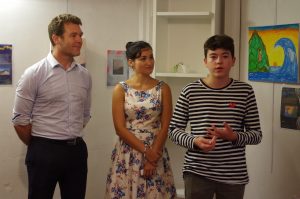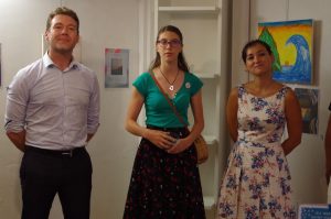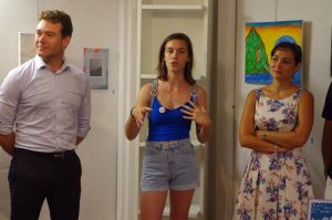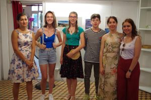 En venant ce premier juillet au vernissage de peinture, nos jeunes artistes ont reçu un badge réalisé par les responsables de la galerie. Dans un cadre simple, mais original et chaleureux, nos élèves ont pu présenter les œuvres notamment aux artistes, ils ont eu aussi la chance de pouvoir visiter les ateliers et discuter des œuvres avec les personnes responsables de la galerie « l’Atelier Art Décalé » à Perpignan.