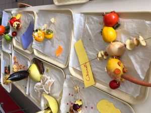Les enfants de CM 1 et 2 ont déposé leur création sur le thème de la semaine du Goût. Objectif : A l’aide de fruits et légumes, créer et nommer une œuvre !