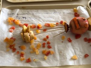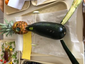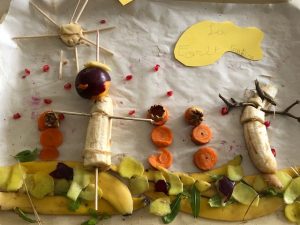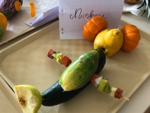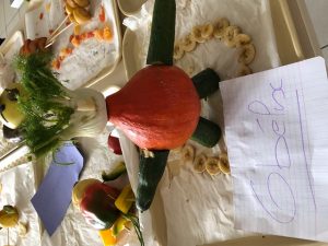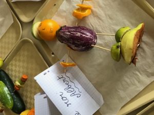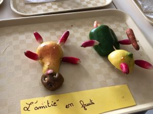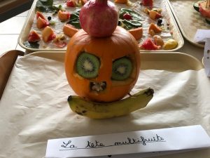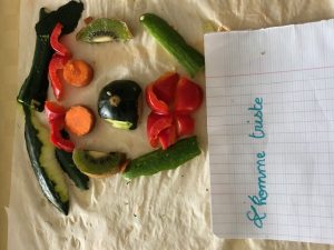 Les enfants de CM 1 et 2 ont déposé leur création sur le thème de la semaine du Goût. Objectif : A l’aide de fruits et légumes, créer et nommer une œuvre !