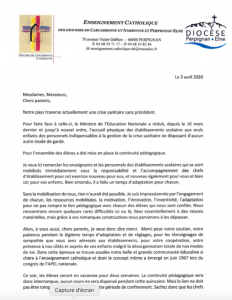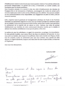 Veuillez trouver ci-joint la lettre de notre Déléguée Episcopale Mme Saby adressée aux parents et aux élèves.