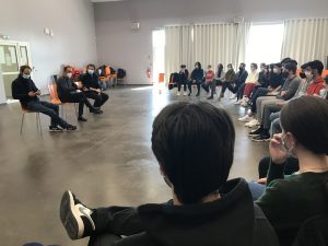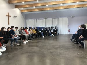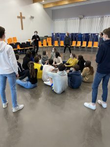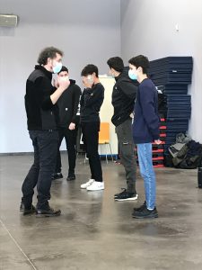 Les lycéens de 1ere quant à eux ont pu assister à une représentation privée de la pièce Cul et chemise de Jean Marie Piemme, grâce à l’Archipel Tour. Ce sont les comédiens eux mêmes, Brice Carayol et Laurent Dupuy avec le metteur en scène Nicolas Oton qui les ont ensuite initiés au jeu théâtral.